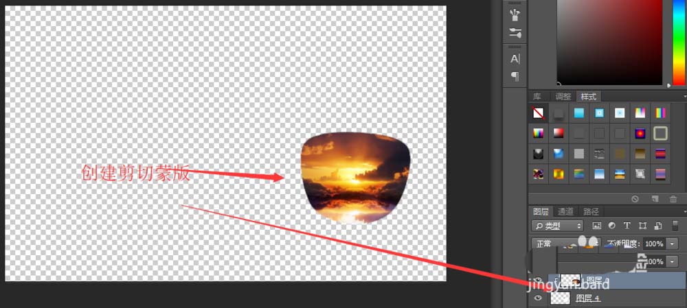 4、然后将原来背景图(没有高斯模糊过的)拖进来建立一个图层,放在最顶层,按下ctrl+t变换工具变换大小和位置,盖住镜片。然后按下ctrl+alt+g创建剪切蒙版,效果如图。