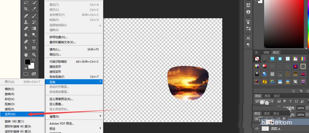 5、执行编辑->变换->变形,然后移动四个角点,对图像进行变形如图。