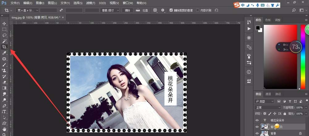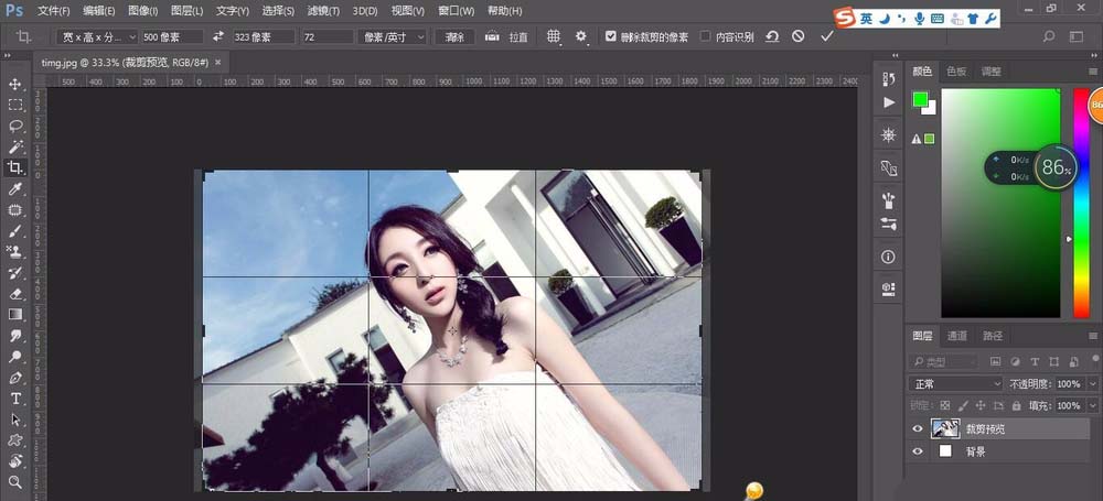 1、打开准备好的图片,使用裁切工具裁切为500*323像素大小