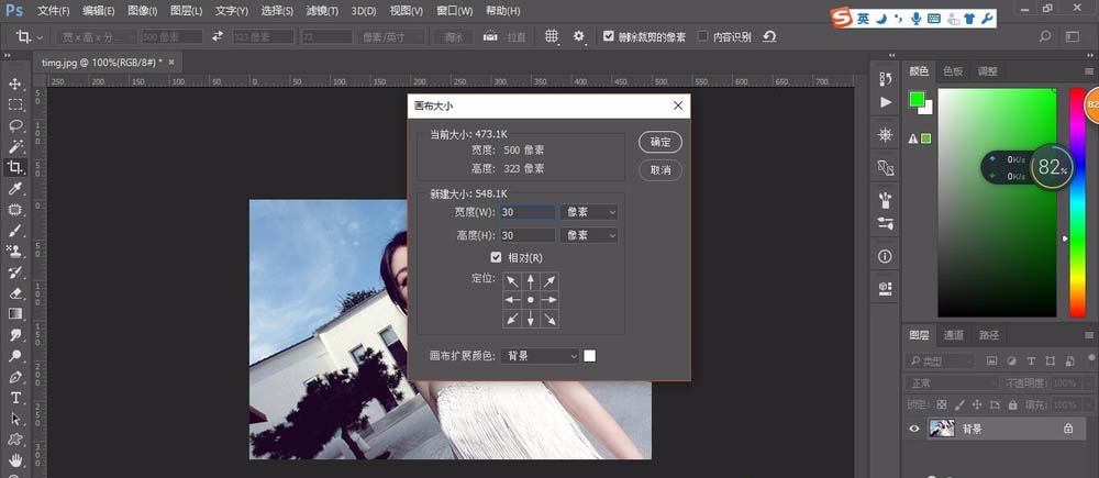 2、图像菜单--画布大小--勾选相对--高度/宽度数值都为30px
