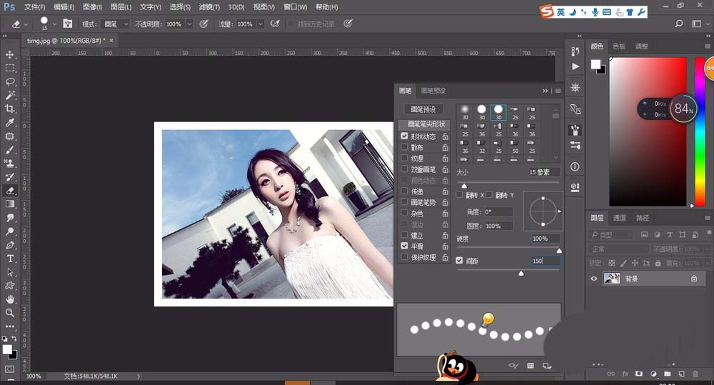 3、点击橡皮擦工具,按f5打开画笔面板,调整数值如图