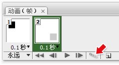 新建一个图像,大约150×150,新建图层并画上方块,将其移动到左上角。接着复制1帧,在新帧中讲方块移动到右下角,并将图层部透明度设为10%,大致如下左图所示。然后按下红色箭头处的
