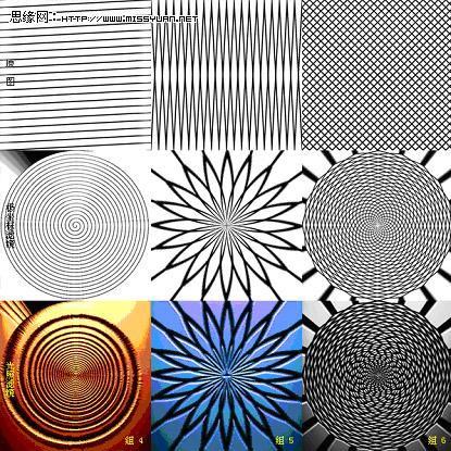我使用极坐标滤镜主要还是用于画圆,或者说画以圆为基础的图像。我们经常看到用矢量软件画的一些重复的有规律的图形,其实某些图利用极坐标滤镜就可以完成,有时比用矢量软件做得更好,变化更多。