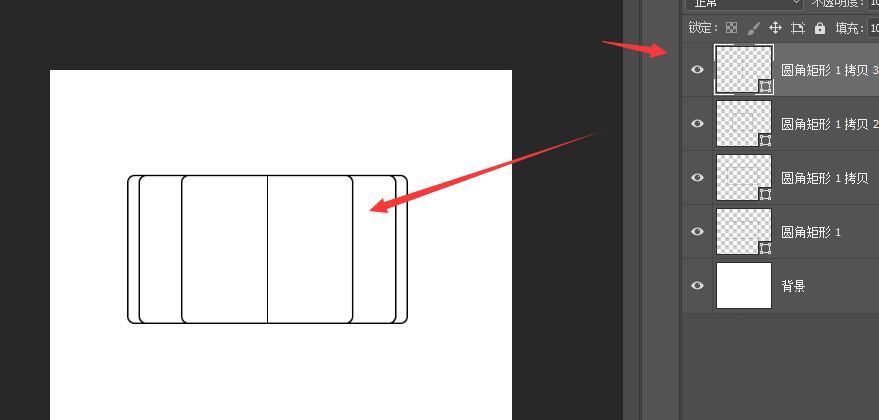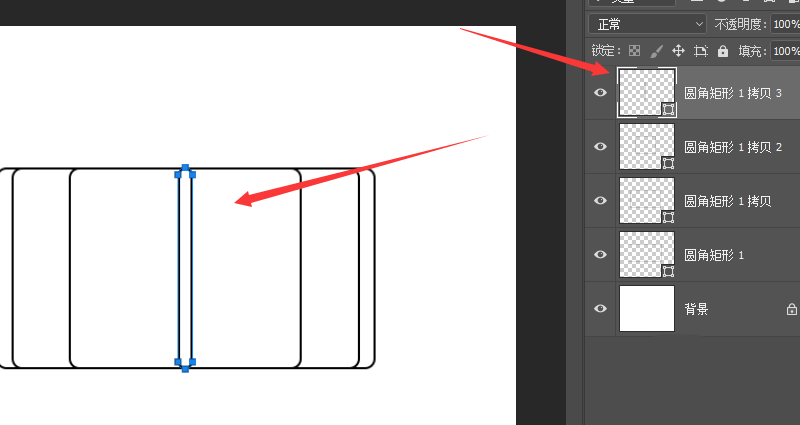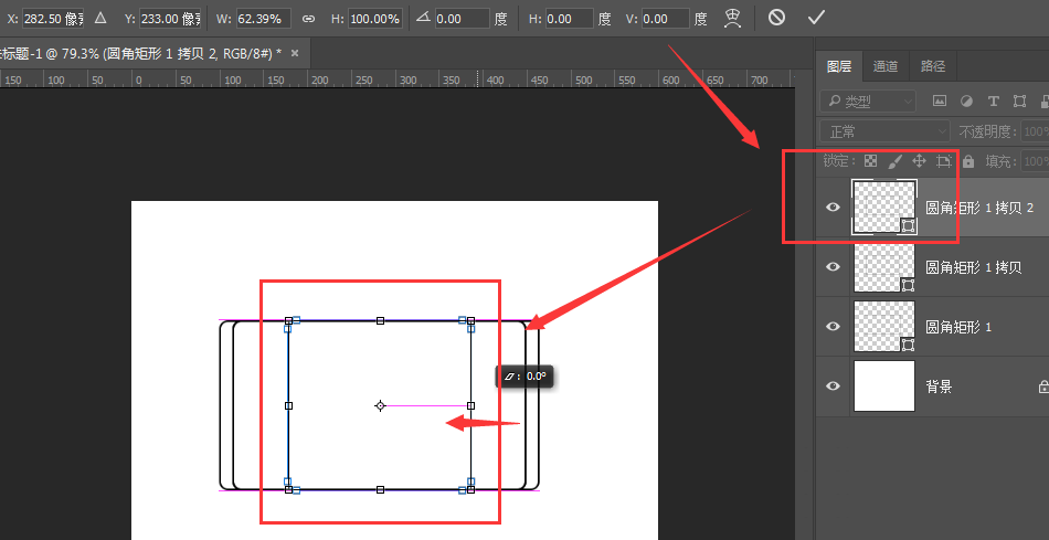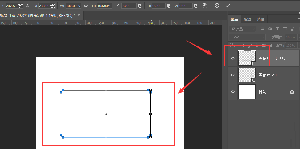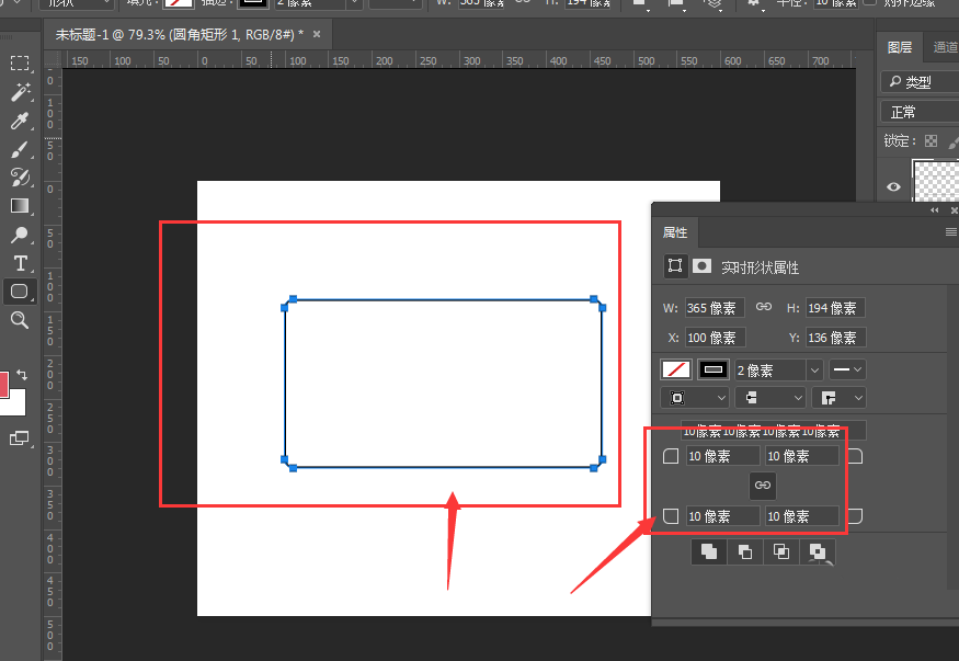 1、如图,创建一个圆角矩形,调节下属性中的圆角大小