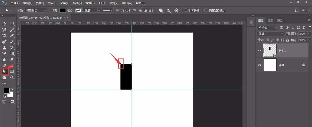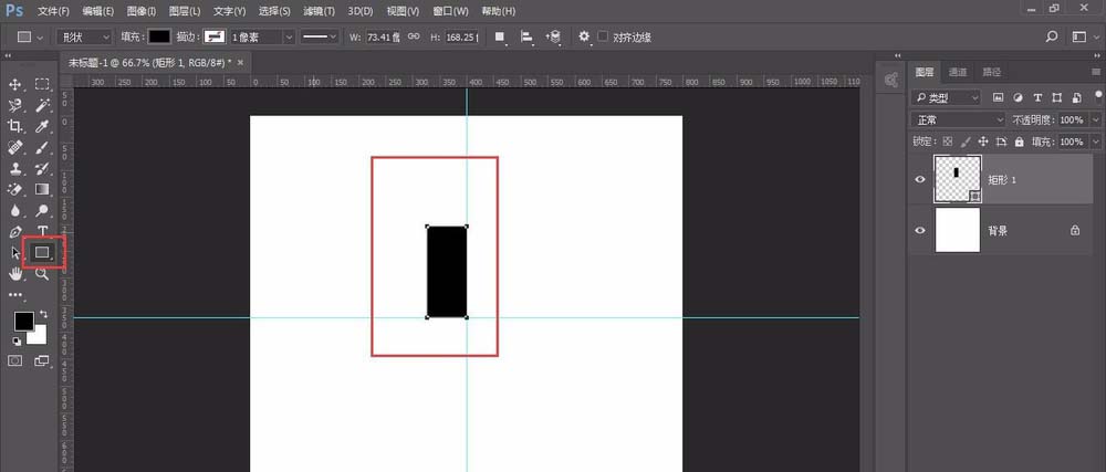 2、选择工具栏中矩形工具绘制一个矩形(如图)