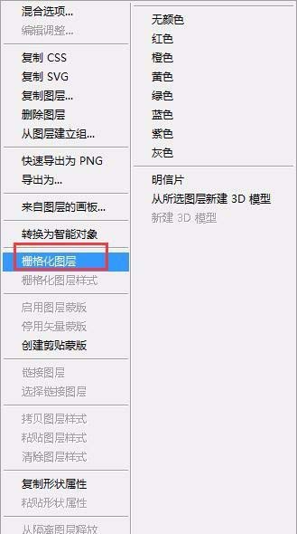 4、选择所在图层,右键栅格化图层