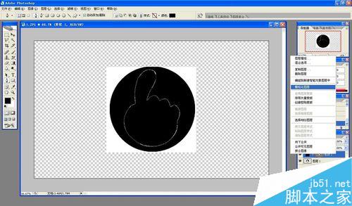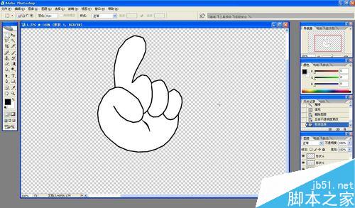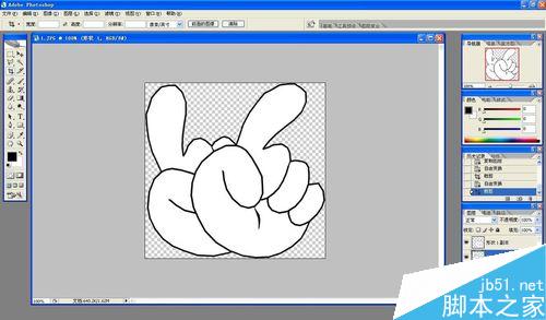 以此类推,得到整只手的轮廓,恢复手图层的透明度,将有色部分改填为白色,删除原图图层。