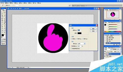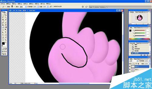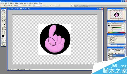 然后是抠“手”,因为有些图片的背景部分颜色很杂,抠图时要用橡皮擦一点一点擦,特别烦,所以本人喜欢用钢笔描图。用钢笔沿着图形边缘点击,一圈下来,栅格化图层,按ctrl键点选手图层,填充任意颜色,描边4个像素左右。