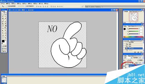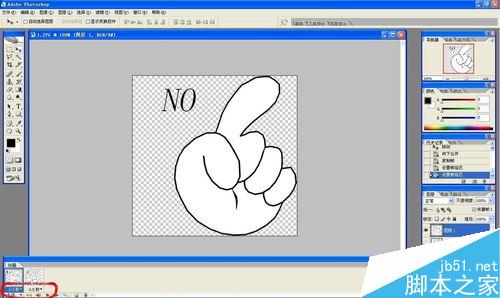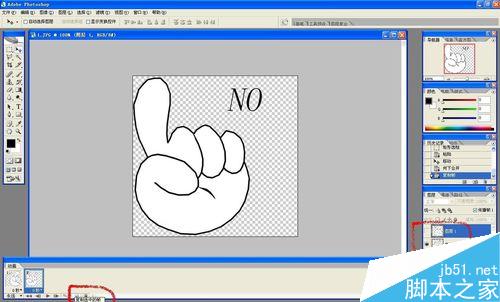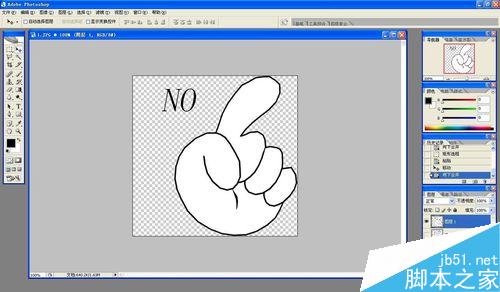 分别为两个手添加“no”,并将一个手和一个“no”合并(按ctrl+e合并图层)。