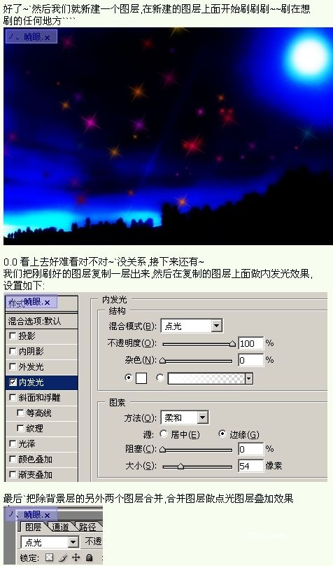 Photoshop画笔绘制夜空彩色星光
