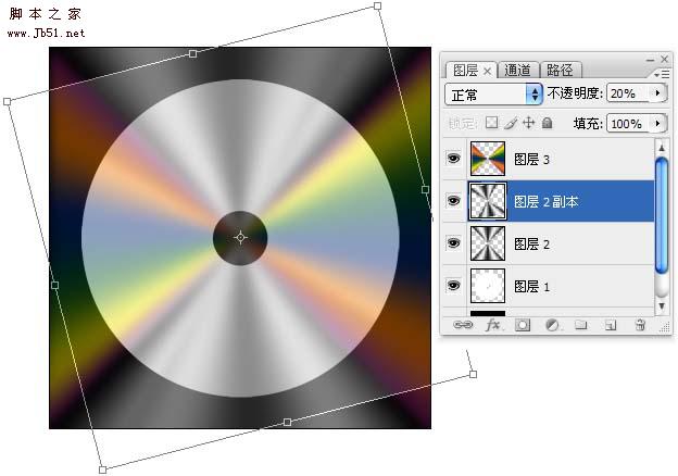 7、将图层“不透明度”降低,继续执行“自由变换”命令,旋转一定角度,来增强反光效果。