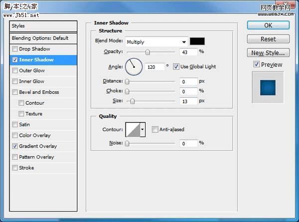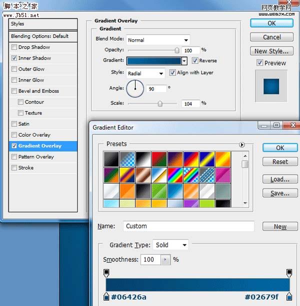 5、设置图层样式,参数及效果如下图。