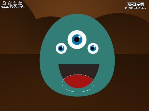 11、设置前景色为#a51313.,创建一个新图层,椭圆工具绘制嘴的部分图形: