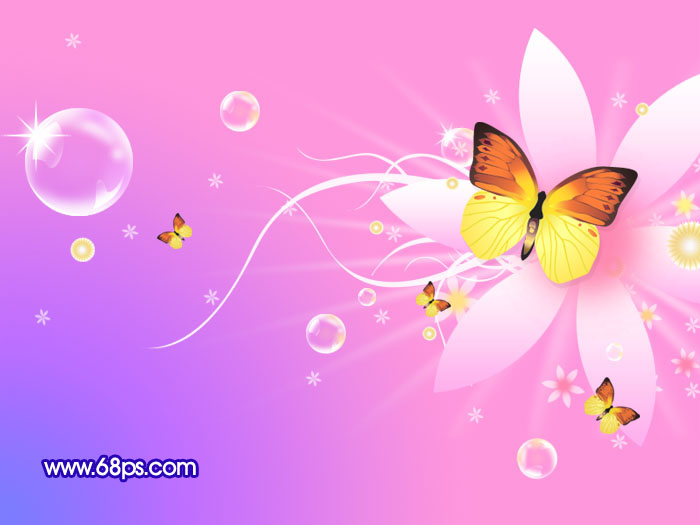 本教程简单介绍利用渐变及一些用ps自制的小图形来制作漂亮的壁纸。画面的实际构成元素不多,都是用少数的几样效果不断的复制。再适当调整下局部的颜色。其它装饰可以按自己喜好去添加。