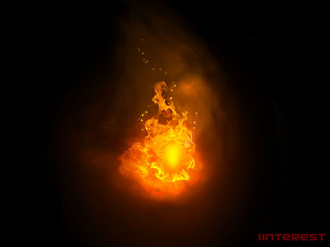 本教程介绍火焰效果的制作方法。制作的时候用到一些火焰图形笔刷,然后再用滤镜等渲染色彩,再配上一些火星等装饰即可。