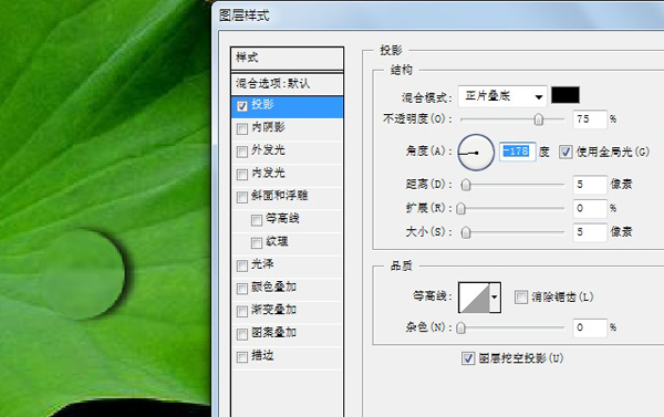 这时候确保在 圆形选区的图层上,选择混合模式 投影