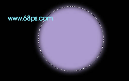 1、新建一个1024 * 768像素的文件,背景填充黑色,然后新建一个图层,用椭圆选框工具拉一个较大的正圆选区,按ctrl + alt + d 羽化15个像素,然后填充颜色:#ac9bcf,如下图。