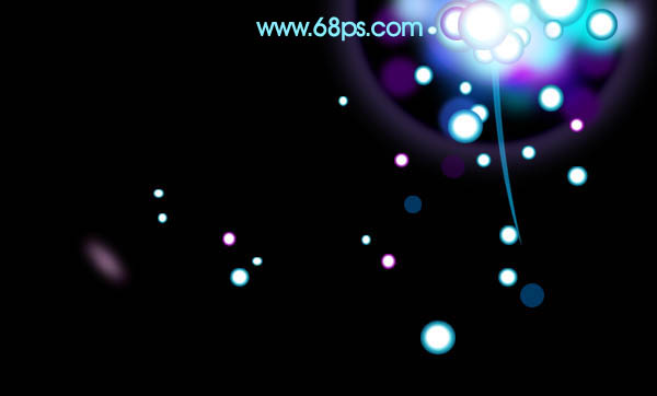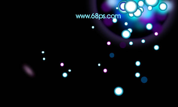 7、新建一个图层,选择柔角的画笔(画笔透明度设置为:100%)刷上一些高光斑点,可以选择不同的颜色,效果如下图。