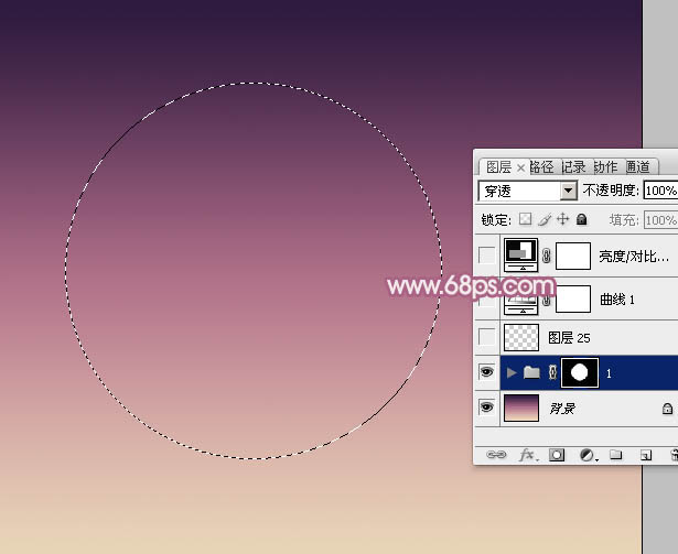 2、新建一个组,用椭圆选框工具拉出下图所示的正圆选区,给组添加图层蒙版。