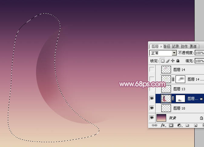 3、在组里新建一个图层,用钢笔勾出左侧边缘的暗部选区,羽化20个像素后填充暗紫色:#77445f,局部用加深及减淡工具调整一下明暗。然后添加图层蒙版,用黑色画笔把底部的过渡擦出来。