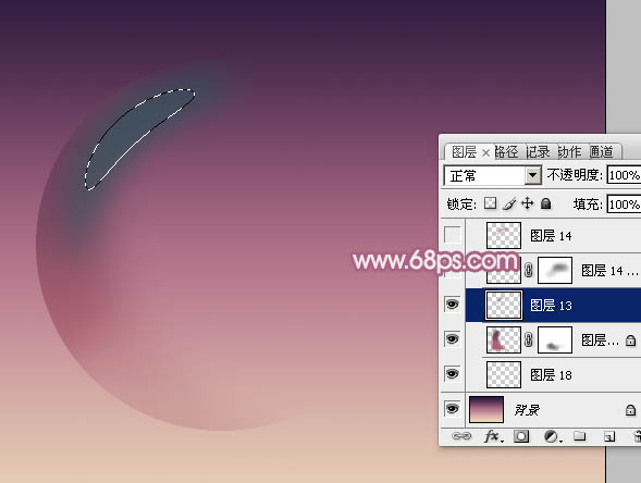 6、新建一个图层,用钢笔勾出顶部的高光选区,羽化12个像素后拉上与背景相同的渐变色,如下图。