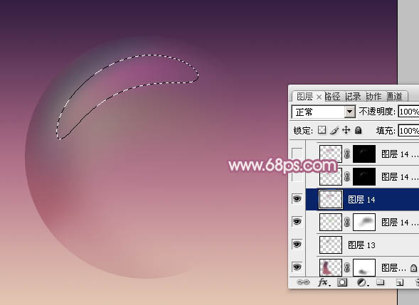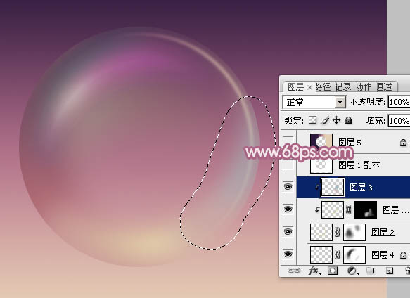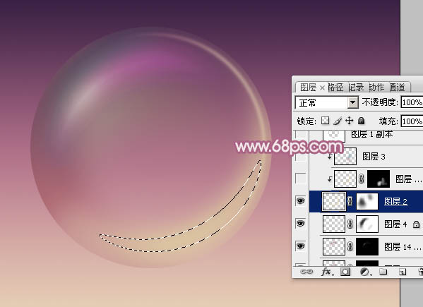 9、新建一个图层,用钢笔勾出底部高光选区,羽化30个像素后填充淡黄色:#e0d6a2,取消选区后添加图层蒙版,用黑色画笔把两端的过渡涂抹自然。
