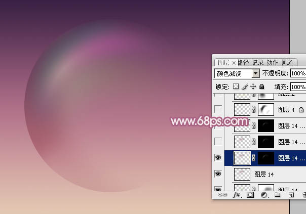 7、把当前图层复制一层,混合模式改为“颜色减淡”,按住alt键添加图层蒙版,用白色画笔把中间需要增亮的部分擦出来,如下图。