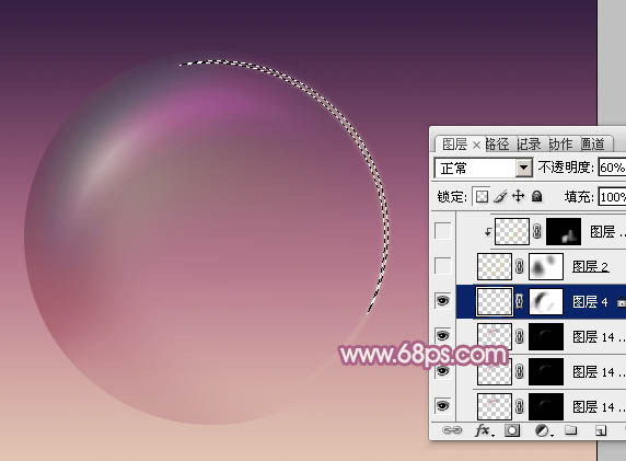 8、新建一个图层,用钢笔勾出右上部边缘的高光选区,羽化2个像素后拉上与背景相同的渐变色,确定后把图层不透明度改为:60%,效果如下图。