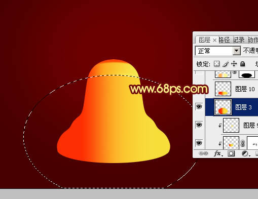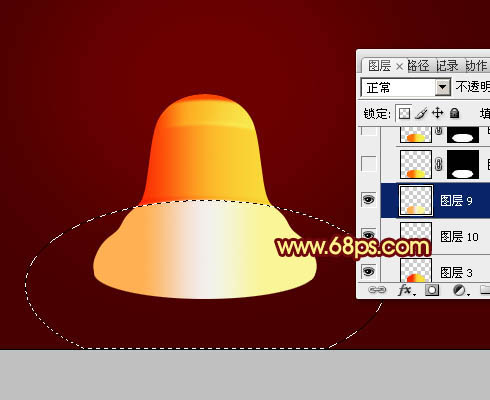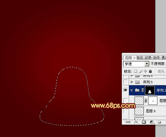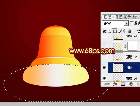 4、新建一个组,用钢笔勾出铃铛主体的轮廓,转为选区后给组添加图层蒙版,如下图。