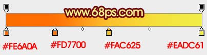 8、新建一个图层,用椭圆选框工具拉出图10所示的椭圆选区,羽化1个像素后拉上图11所示的线性渐变。