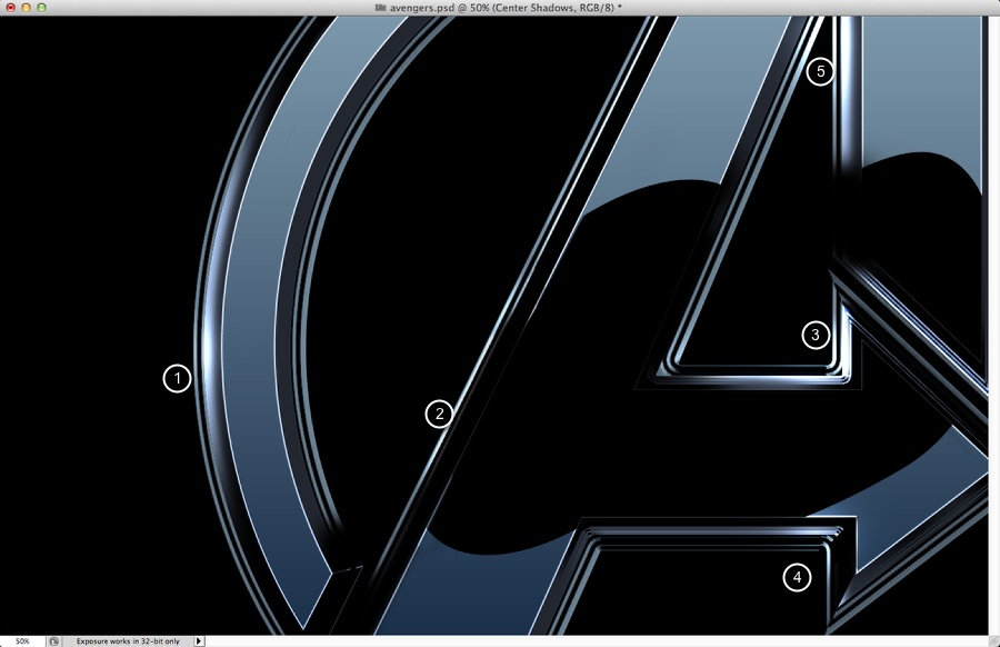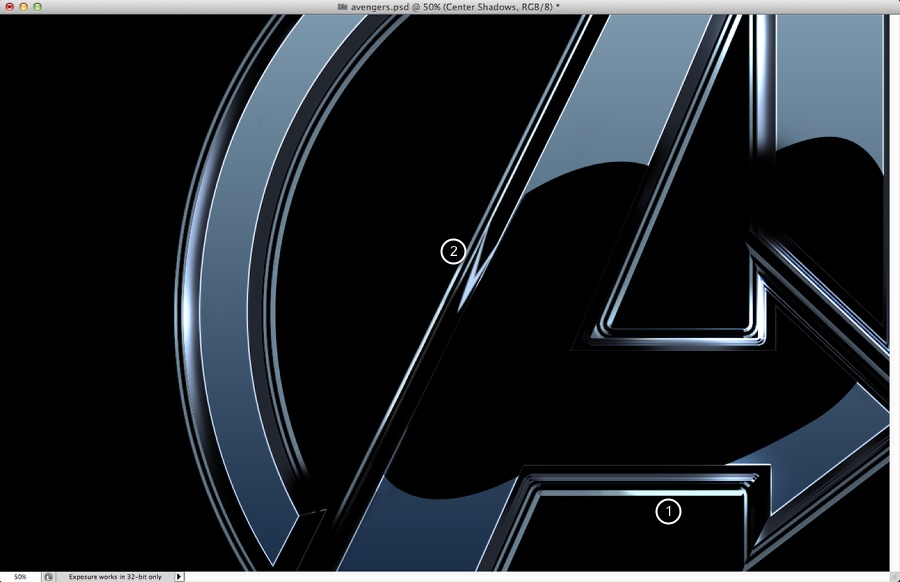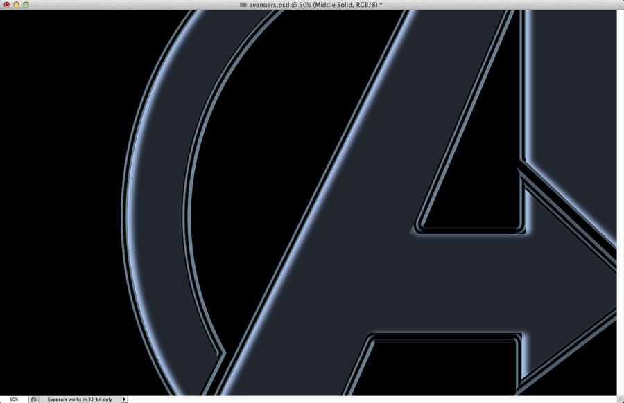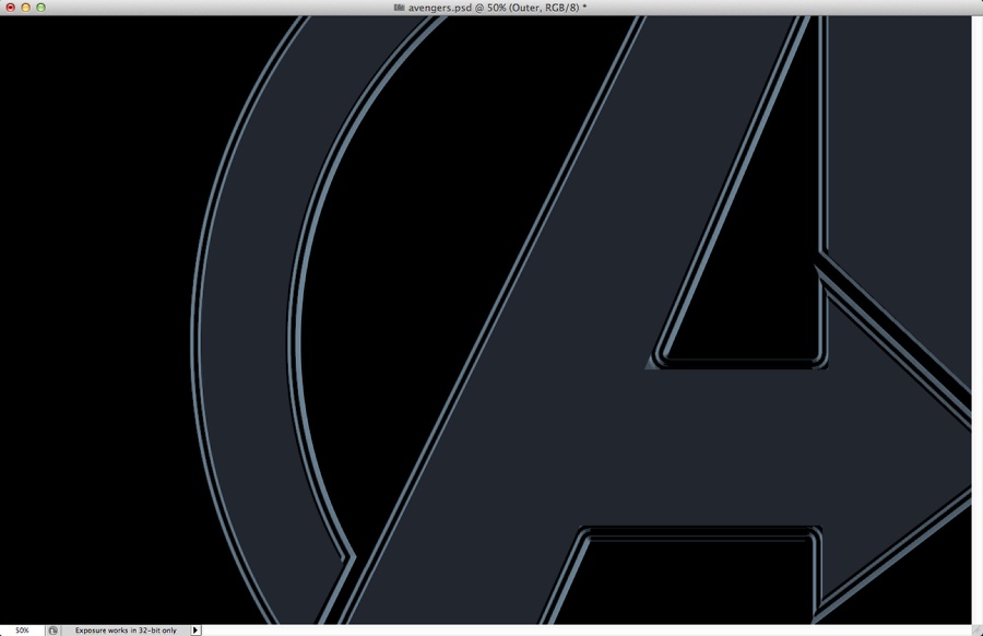 第一件事要做的就是找到复仇者的标志。只要在谷歌上搜索,你会发现一个向量的版本。然后在illustrator您必须创建2新版本使用对象>路径>抵消路径。使用负值的偏移量。我用2毫米为内部和外部版本。