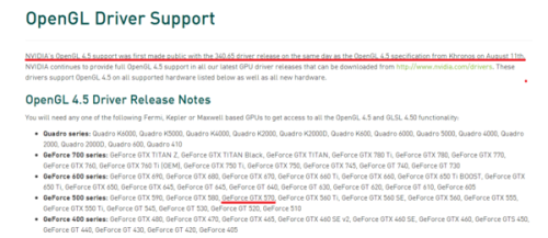4. 可以看出,是从340.65驱动开始提供对OPGL 4.5支持的;