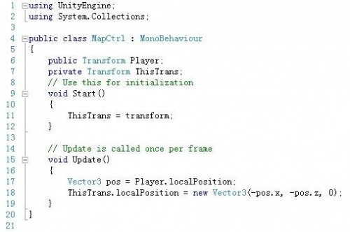 把这个代码拖到你的小地图Sprite上面,然后再把你的角色拖到Player这个属性上面,接下来你就能看见一个很酷的小地图了。