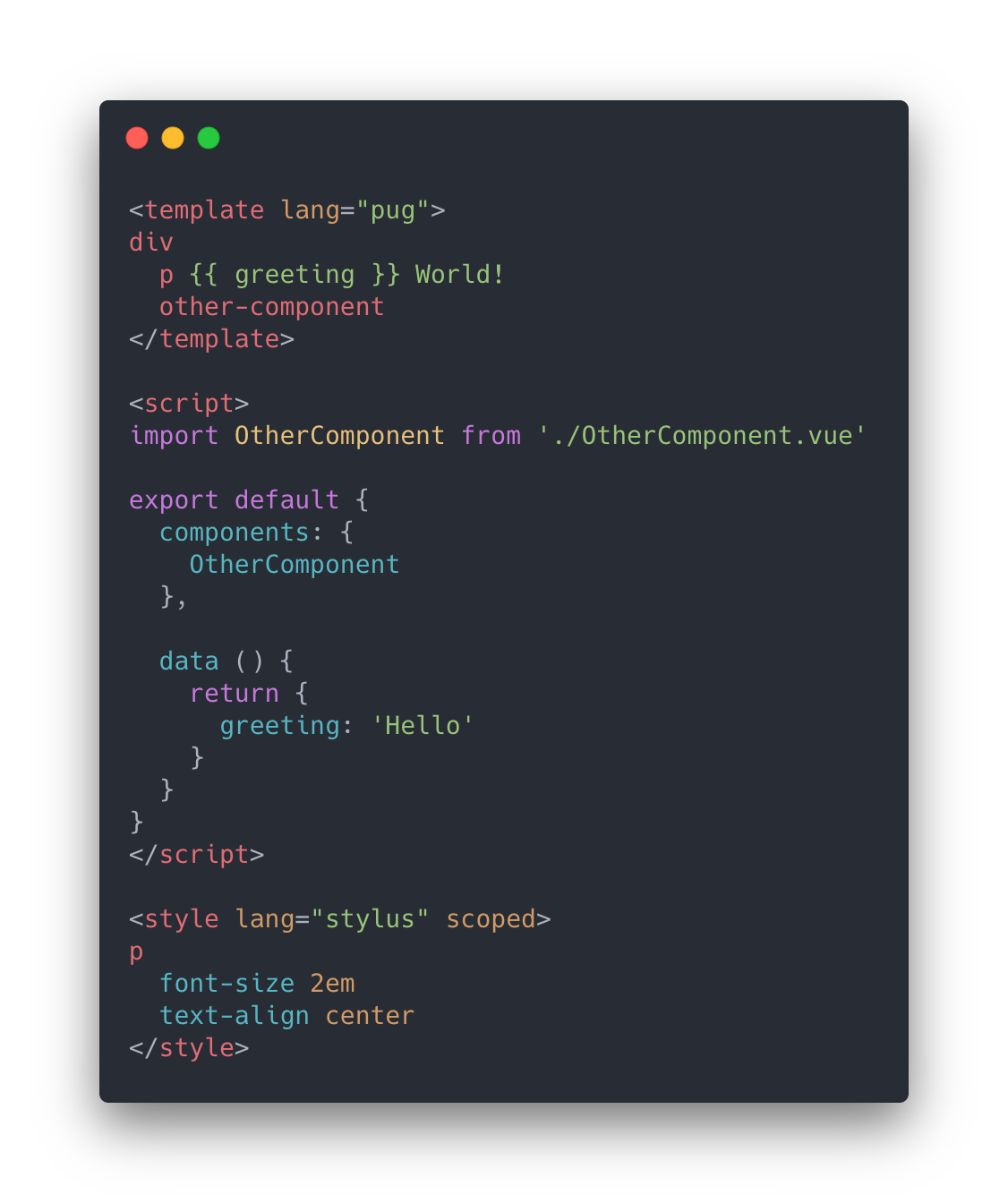 <!-- my-component.vue --> <template> <div>this will be pre-compiled</div> </template> <script src="./my-component.js"></script> <style src="./my-component.css"></style>