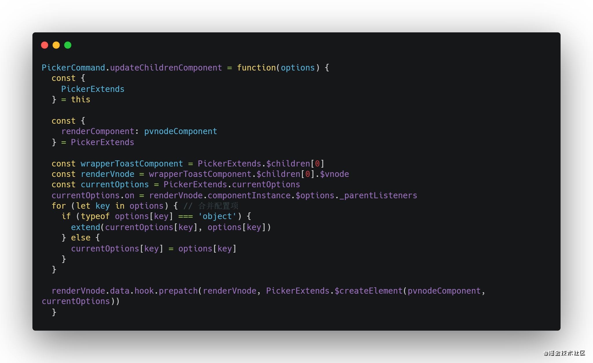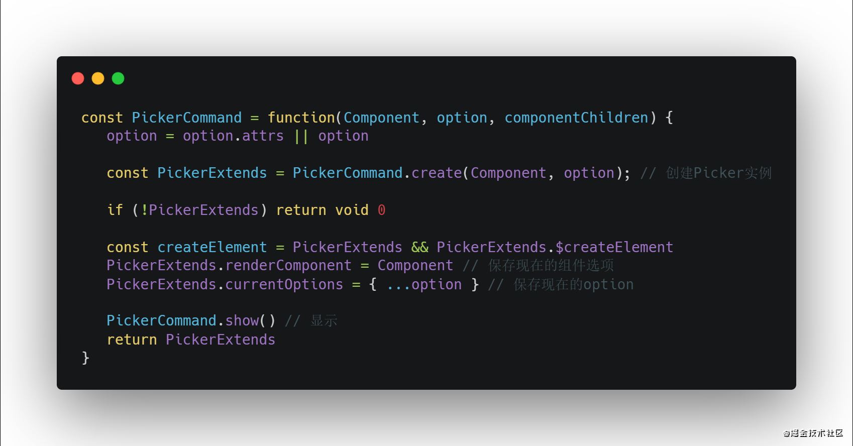 - 在render函数里,picker将之前传入的组件选项作为默认插槽放置到内部,并且自身作为当前实例的子组件充当根元素