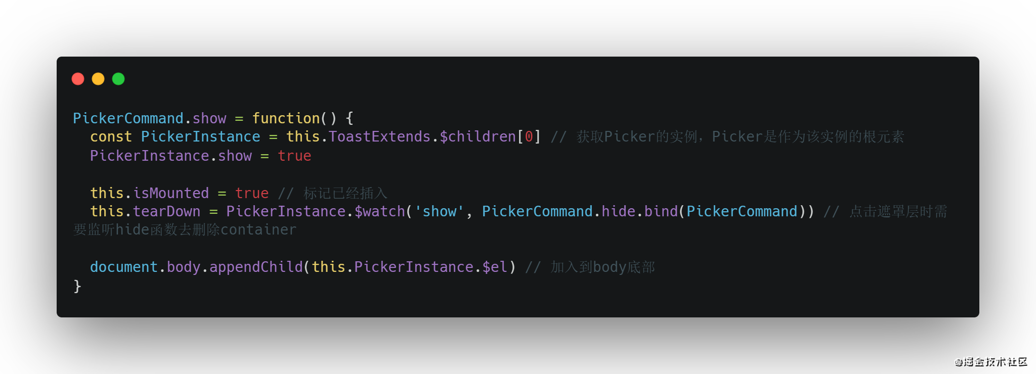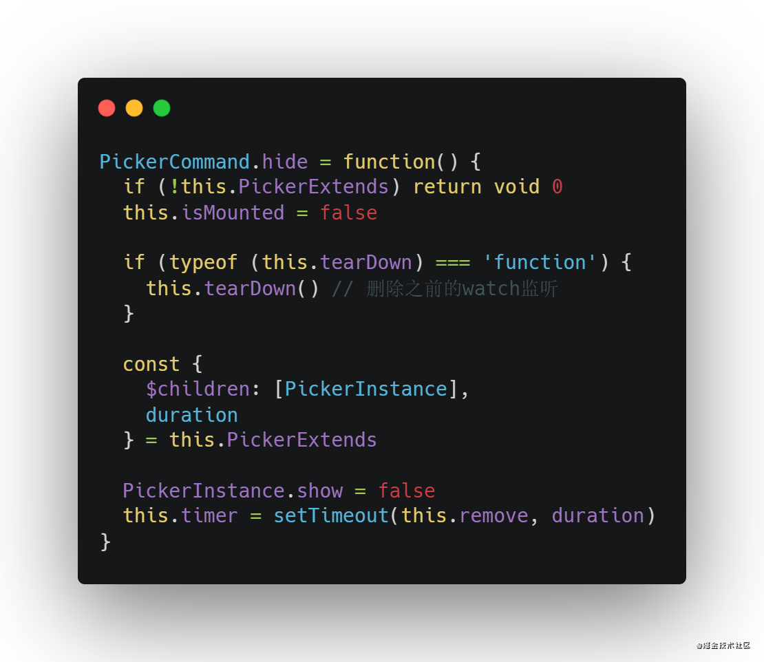 - 点击mask元素会将picker隐藏,这里需要再定义一个hide方法
