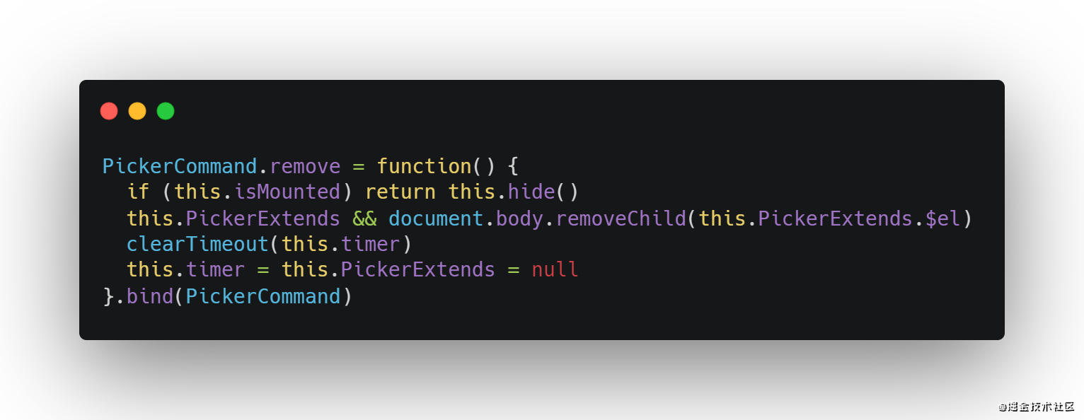 remove函数作用是删除真实dom、清除延时器、将timer以及picker实例置为null, 调用gc