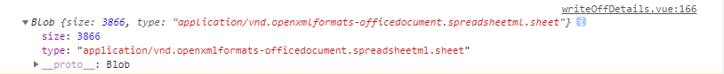 所以我们接收后台传给前端的二进制流之前需要先设置responsetype为blob,否则默认会以json获取,下载下来的文件打开会提示文件已损坏。控制台输出的可以看到是个正确的blob对象,这就说明我们的配置是对的,如图1所示。