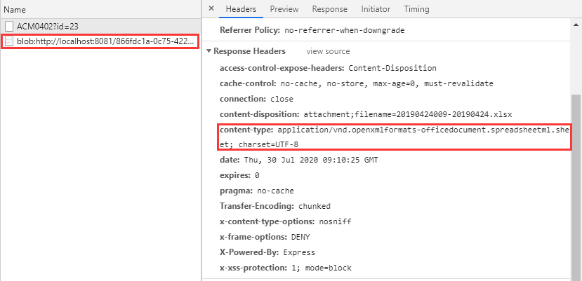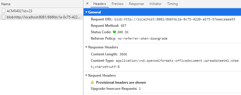 在正常的导出请求之后可以看到又发了一个新的blob请求,其本质是到这个地址下载文件,如图3所示:
