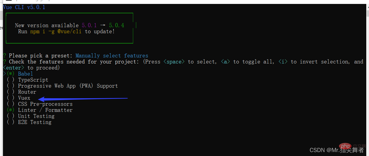 在脚手架 创建项目时勾选vuex的选项系统会自动创建