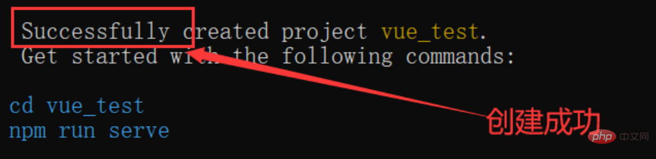 命令执行后,如果有下图所示,则表示创建成功(很贴心,下面第一行蓝色的代码就是切换到创建成功的目录上面,第二行则是运行该vue项目)
