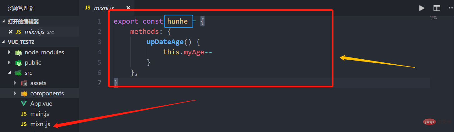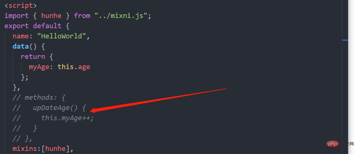 第一步定义混合,例如:data(){....},methods:{....}},将该组件的methods或者data配置项拿出去,放到mixin.js里面,这里是将methods放到了mixin.js里面