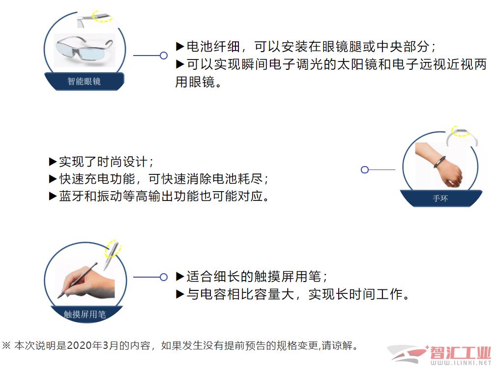 针形锂离子电池——CG-420A主要用于助听器及小型医疗设备和TWS耳机,实现了客户对电池容量和尺寸小型化的复合需求。
