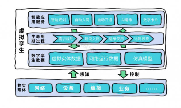 数字孪生机制充分利用网管采集比对、物联网技术、AI技术等手段采集网络实体数据,使虚拟资源对象准确、全面、动态映射网络实体,进而监测物理实体在现实环境中的行为。