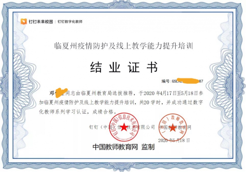钉钉数字化教师,甘肃省教师数字化水平提升结业证书