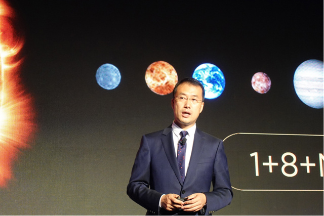 同时,华为手机产品线总裁何刚在峰会上介绍了华为下一阶段将推出的终端产品,并提出华为5G全场景“1+8+N”战略。他形象地将智能手机比作恒星,将TV、音响、眼镜、手表、车机、耳机、PC、平板喻为8大行星,而来自智能家居、运动健康、影音娱乐、智慧出行、移动办公等领域的诸多应用则是N个卫星。通过AI,新的交互方式将击穿产业以往“烟囱”式的结构。