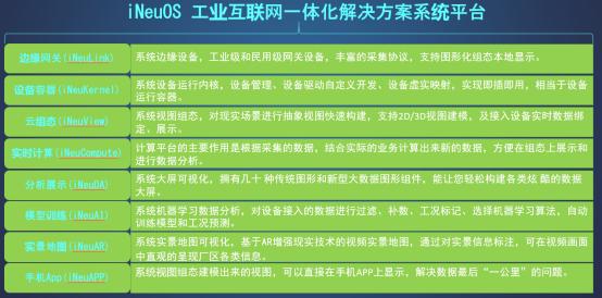 自主开发iNeuOS工业互联网云端操作系统(官方网站:http://www.ineuos.net),以数据为中心的体系建设,完成即接、即用、即分析、即显示,开放式的二次开发,降低开发和维护成本,提高产品开发和项目执行效率,在物联网、大数据、云计算和工业互联网的发展过程中,紧跟时代步伐、结合行业经验、提供全方位的解决方案。