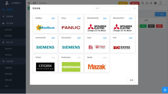 支持采集的机床型号包括:发那科(Fanuc)、西门子(Siemens)、三菱(Mitsubishi)、哈斯(Hass)、凯恩帝(knd)、海德汉(Heidenhain)、力士乐(Boschrexroth)、兄弟(Brother)、广州数控(GSK)。网关配置。