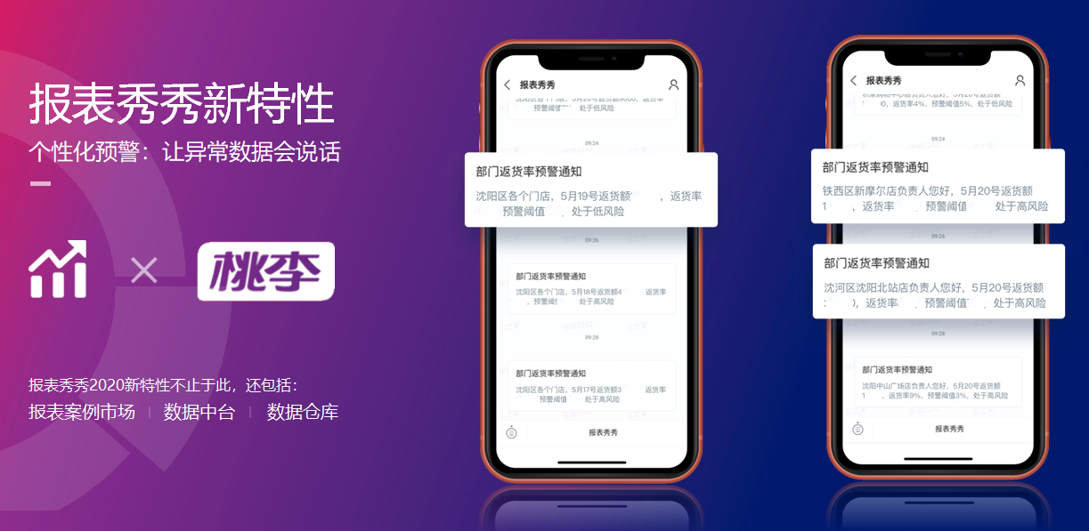我是云之家报表秀秀产品总监田小彦,今天在这里发布报表秀秀2020产品新特性,其中之一是:云之家和桃李共创的个性化预警。