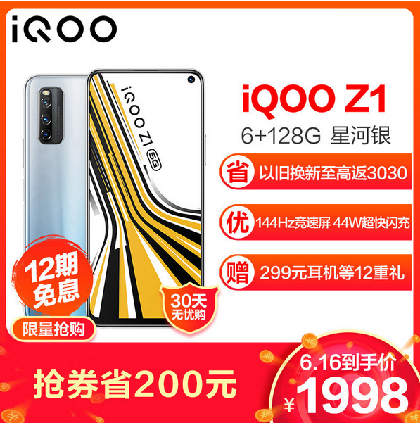 作为iQOO最新发布的5G性能先锋,iQOO Z1刚好赶上了618购物节。在“618网购狂欢节”首日,iQOO Z1就斩获了京东/天猫/苏宁手机2-2.5K价位段销量&销售额双冠军。在没有优惠活动之前,这款手机的售价最低也要2198,但是在618购物节期间,在京东、天猫、苏宁等电商平台领券后,只要1998就可以拿到。不仅如此,用户选购iQOO Z1时,可获赠iQOO耳机、12期免息等福利,非常超值。